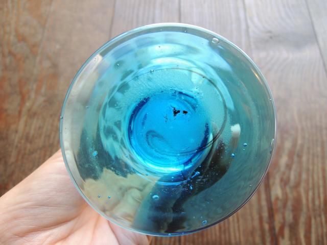 鱗紋のあぶり出しに青い足の氷コップです。 多少の傾きはあります。 口縁にごく小さな不純物が入っています。 傷はありません。 商品は古いものですので購入は慎重にお願いします。 わからないことは必ず質問してください。 高さ12cm、口径8.2cm 最近チェックした商品