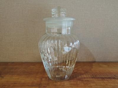 ラベルが貼ってあったようですが、キャンディーでも入っていたのでしょうか? 蓋は共蓋ですが少し緩い感じがします。 ガラスはゆらゆらで味があります。 商品は古いものですので購入は慎重にお願いします。 わからないことは必ず質問してください。 口径5.8cm、高さ18cm 最近チェックした商品
