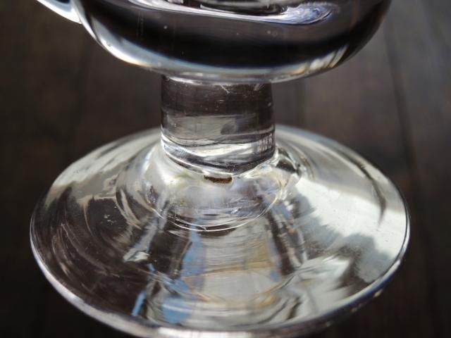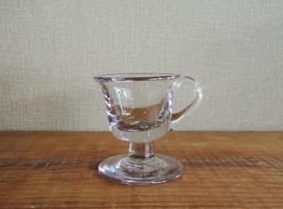 小さなハンドル付き、少し傾いたフォルムも愛らしいです。 うっすらピンクがかったガラスです。 傷はありません。 商品は古いものですので購入は慎重にお願いします。 わからないことは必ず質問してください。 口径5cm、高さ5.6cm 最近チェックした商品