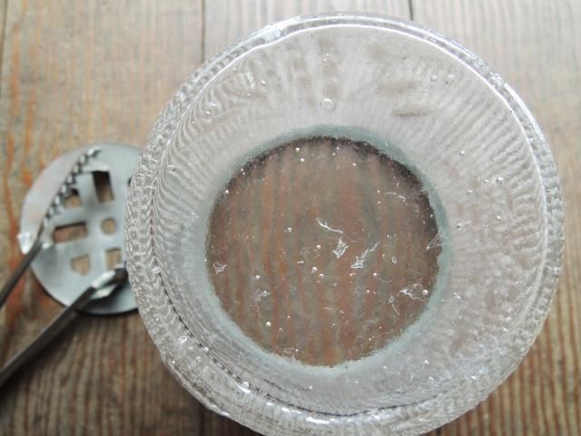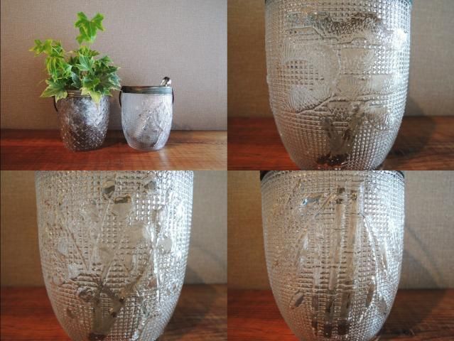 とろりとした味のあるガラスです。 夏の花入れとしてお使いいただいても涼やかで素敵ですよ。 水切りとトングが付属しています。 商品は古いものですので購入は慎重にお願いします。 わからないことは必ず質問してください。 高さ12.5cm、口径10.3cm 最近チェックした商品