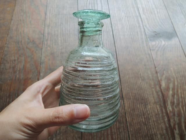 シンプルな輪線、気泡がたくさん入り味のある瓶です。 傷はありません。 商品は古いものですので購入は慎重にお願いします。 わからないことは必ず質問してください。 高さ12cm (4本並んだ写真は大きさ比較です) 最近チェックした商品