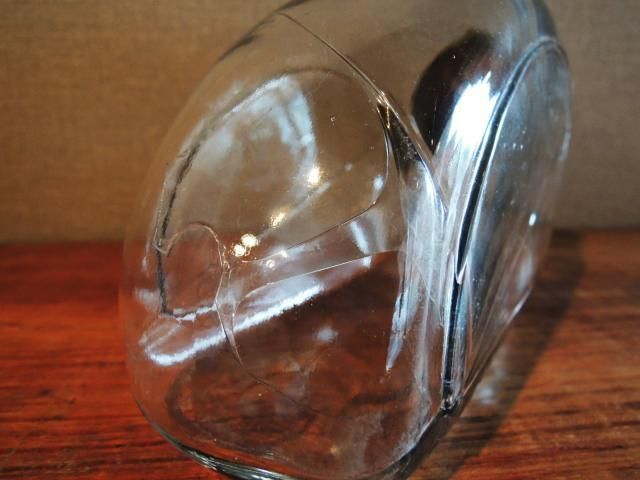 内側に大きな気泡割れがあり、中にガラス片がくっついています。 外側から亀裂のように見えますが割れではありません。 口は切りっぱなしを擦ったものでガジガジしています。 蓋にも腐食がそれなりにあります。 商品は古いものですので購入は慎重にお願いします。 わからないことは必ず質問してください。 最大幅16cm、高さ9cm 最近チェックした商品