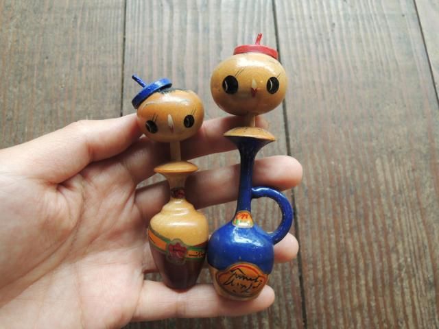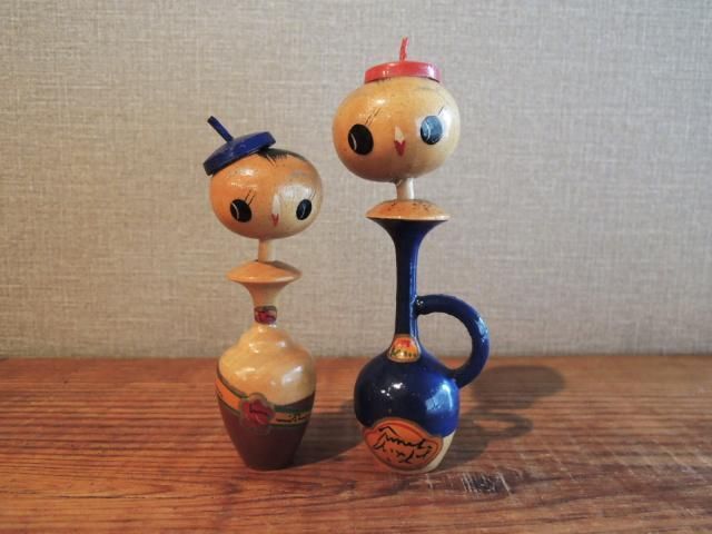 洋酒をモチーフにしたモダンなこけしです。 状態はよいです。 ペアでお願いします。 商品は古いものですので購入は慎重にお願いします。 わからないことは必ず質問してください。 高さ8cm、9.5cm