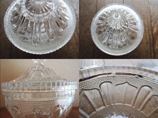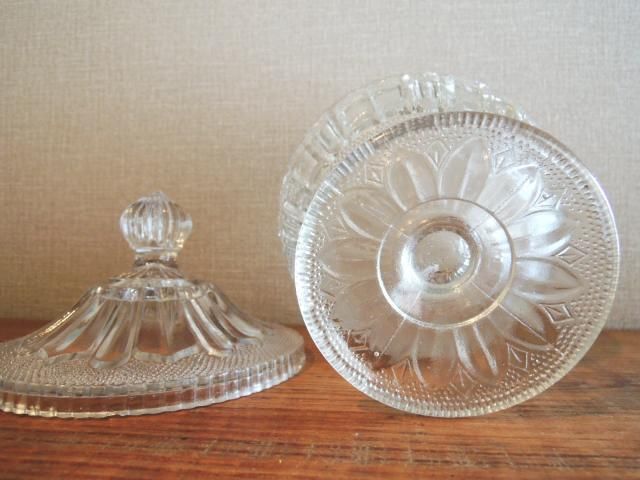 大正〜昭和初期頃のプレスガラス蓋物です。