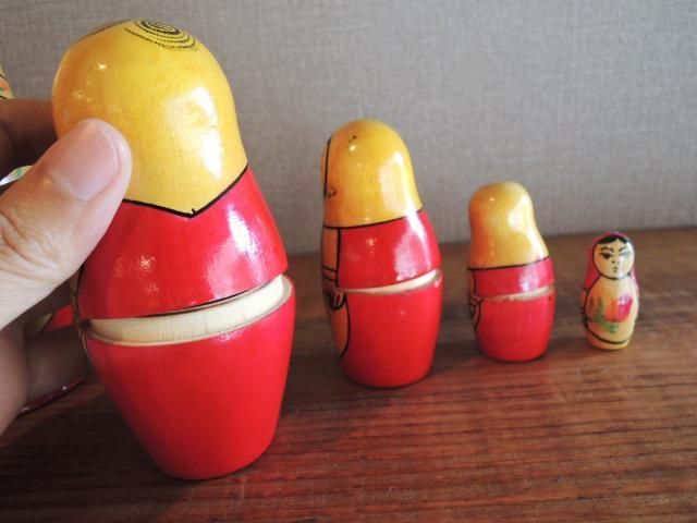 made in USSR ソビエト連邦製です。 5体揃っていますが、2人目からの蓋のしまりが悪くきっちり閉まりません。 色剥げなどはありません。 商品は古いものですので購入は慎重にお願いします。 わからないことは必ず質問してください。 高さ14cm 最近チェックした商品