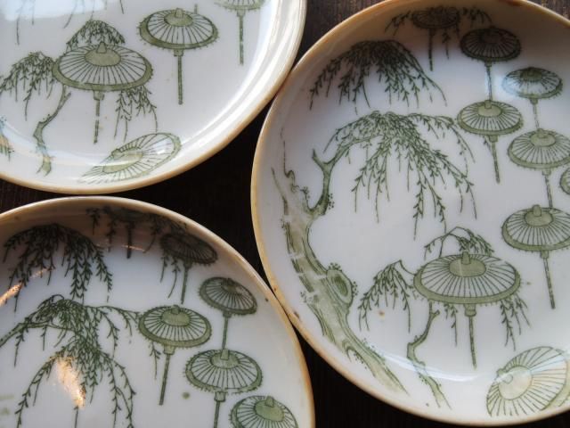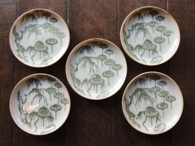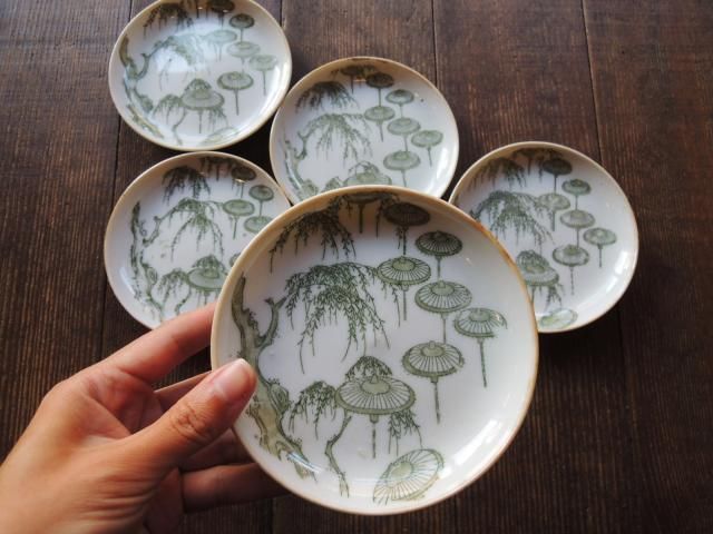 柳に和傘尽しのおもしろい図柄です。 5枚セットでお願いします。 商品は古いものですので購入は慎重にお願いします。 わからないことは必ず質問してください。 径11.5cm 最近チェックした商品