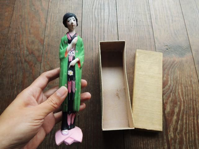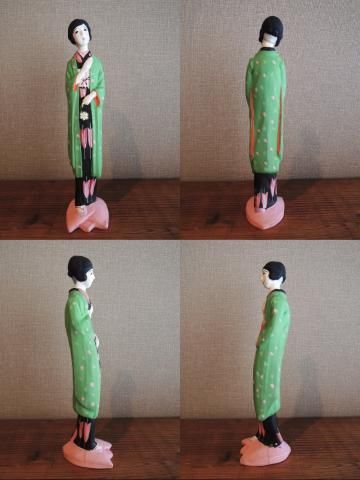 モダンな矢絣の着物にハート尽くしの長羽織を羽織った美人さんです。 鼻の先に極わずかな色落ちがありますが状態は良好です。 商品は古いものですので購入は慎重にお願いします。 わからないことは必ず質問してください。 高さ18.5cm 最近チェックした商品