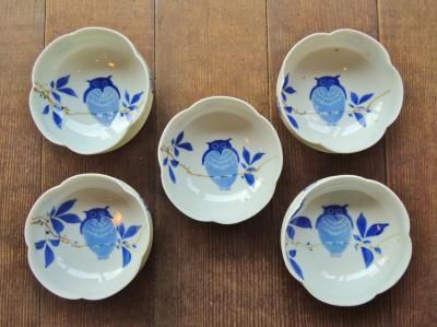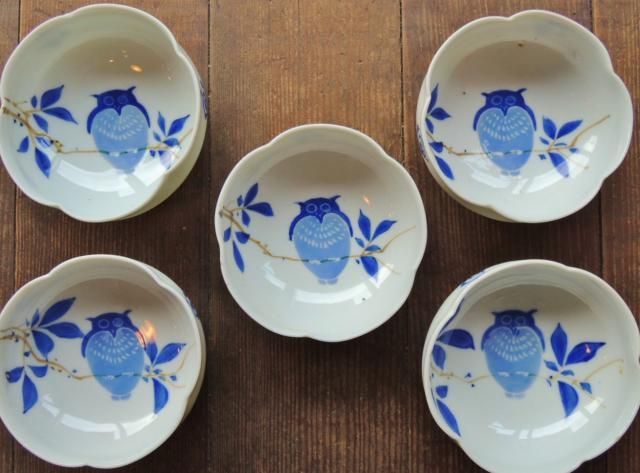 かわいいふくろうの図柄です。 多少の歪みなどあります。 傷はありません、5枚セットでお願いします。 商品は古いものですので購入は慎重にお願いします。 わからないことは必ず質問してください。 径10cm、高さ4.5cm 最近チェックした商品